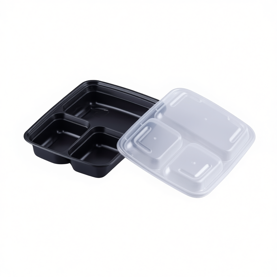 Boîte à lunch rectangulaire en PP de 33 oz avec 3 compartiments, design simple, anti-fuite, couvercle en plastique réutilisable, matériau de qualité alimentaire