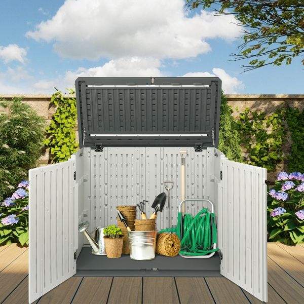Abri de jardin extérieur verrouillable de 34 pieds cubes, armoire horizontale pour tondeuse à gazon, poubelles et autres rangements extérieurs - pour usage domestique