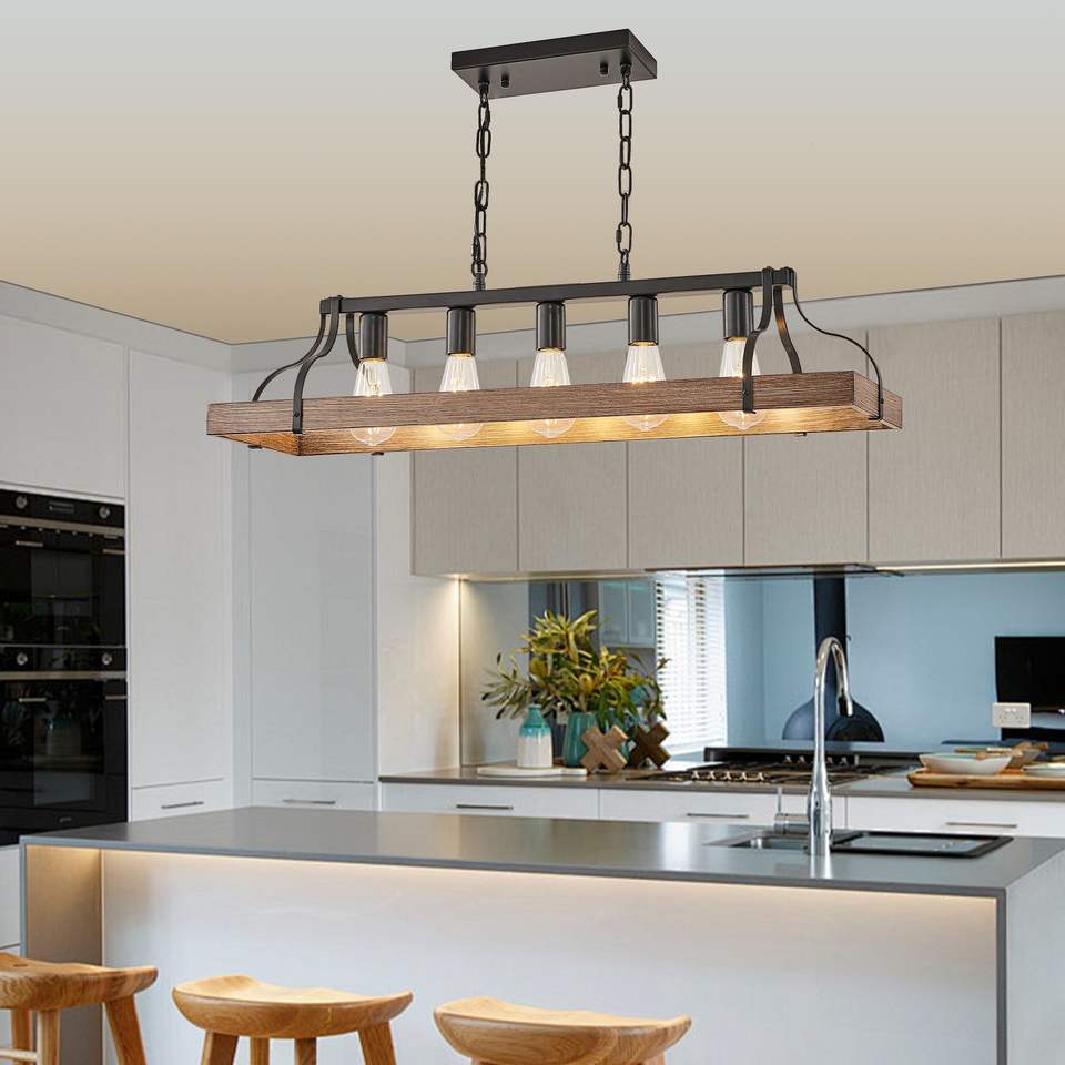Lustre moderne en bois de noyer noir de 34 pouces, style ferme, pour salle à manger, salon, 5 douilles pour ampoules E26