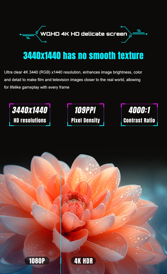Moniteur de jeu LED incurvé super large de 34 pouces, écran d'ordinateur LCD PC Full HD 4K 165Hz