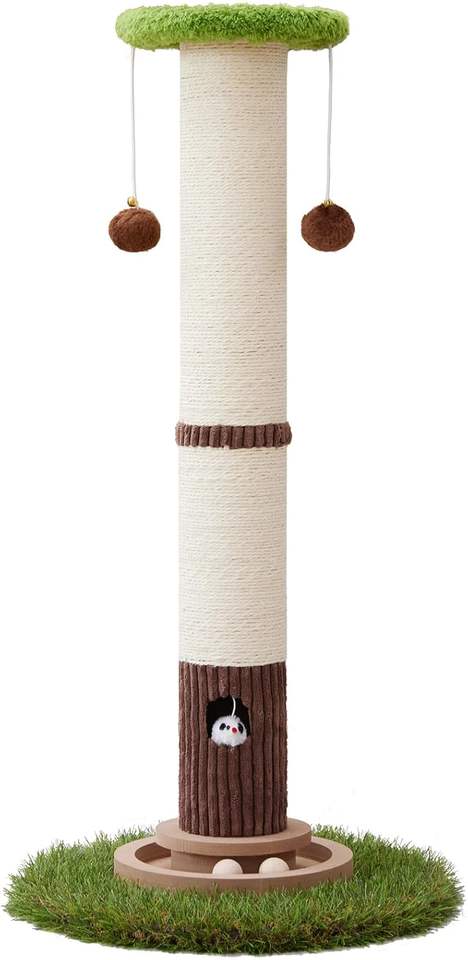 Griffoir pour chat de 34 pouces de hauteur avec jouet à balle sur rail, robuste et épais, grand diamètre, en sisal naturel