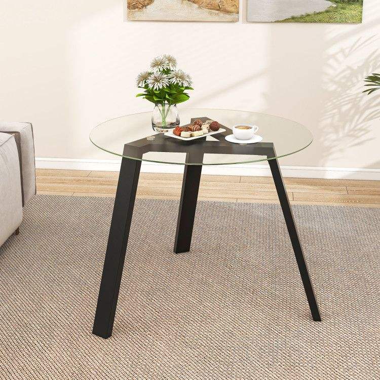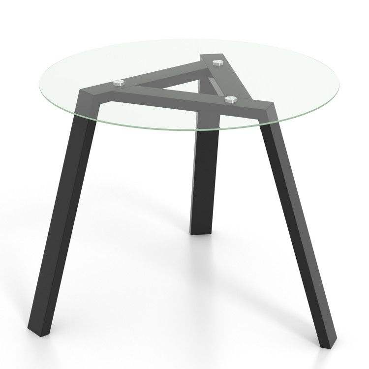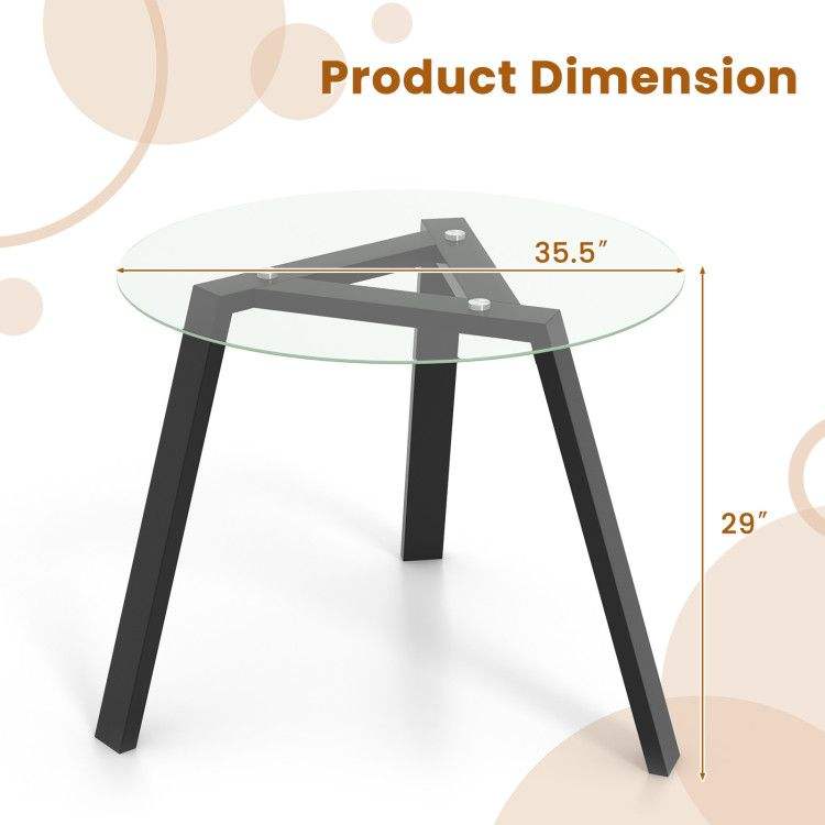Table à manger ronde en verre de 35,5 pouces avec structure en bois de caoutchouc pour 4 personnes