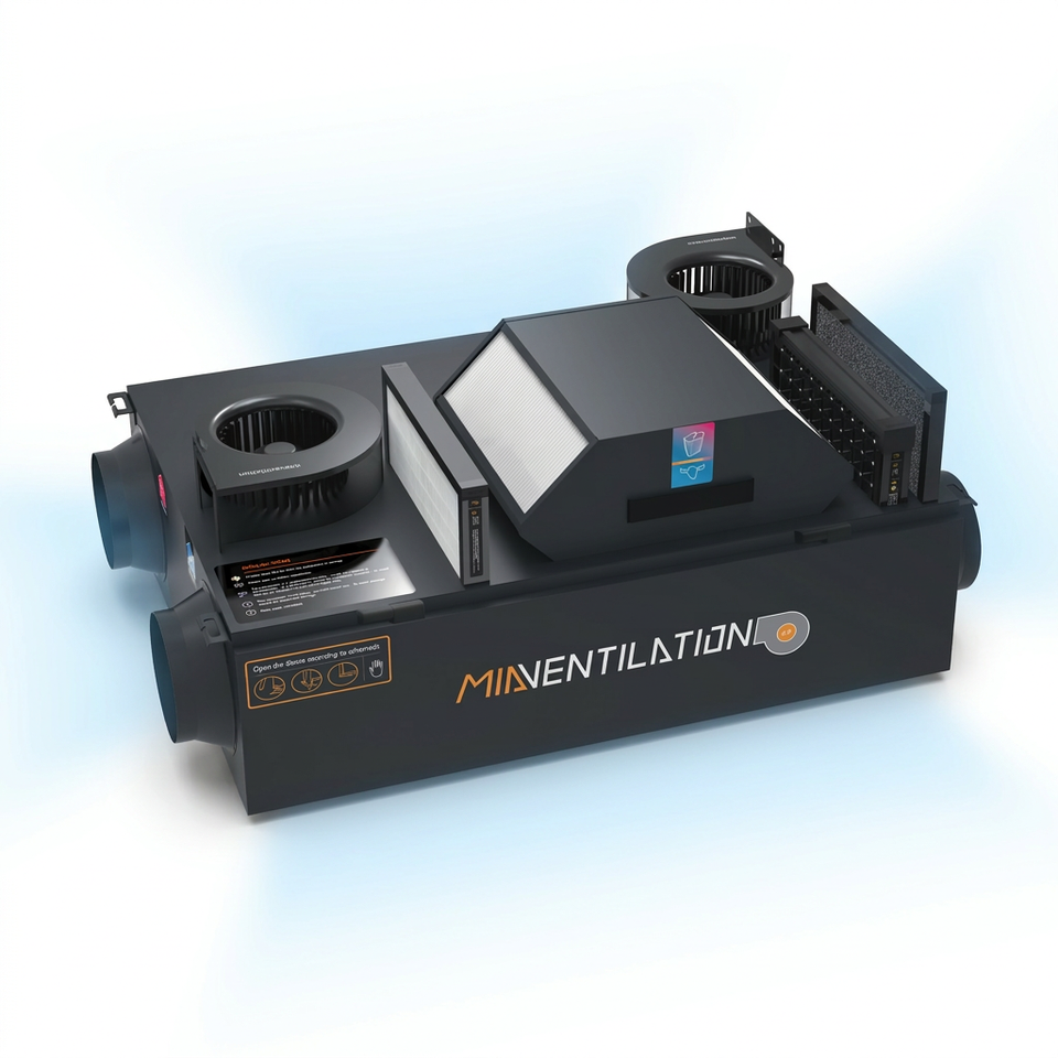 Ventilation à récupération d'énergie montée au plafond MIA 350 m³/h avec contrôleur de température Modbus RS485 VOC PM2.5 CO2