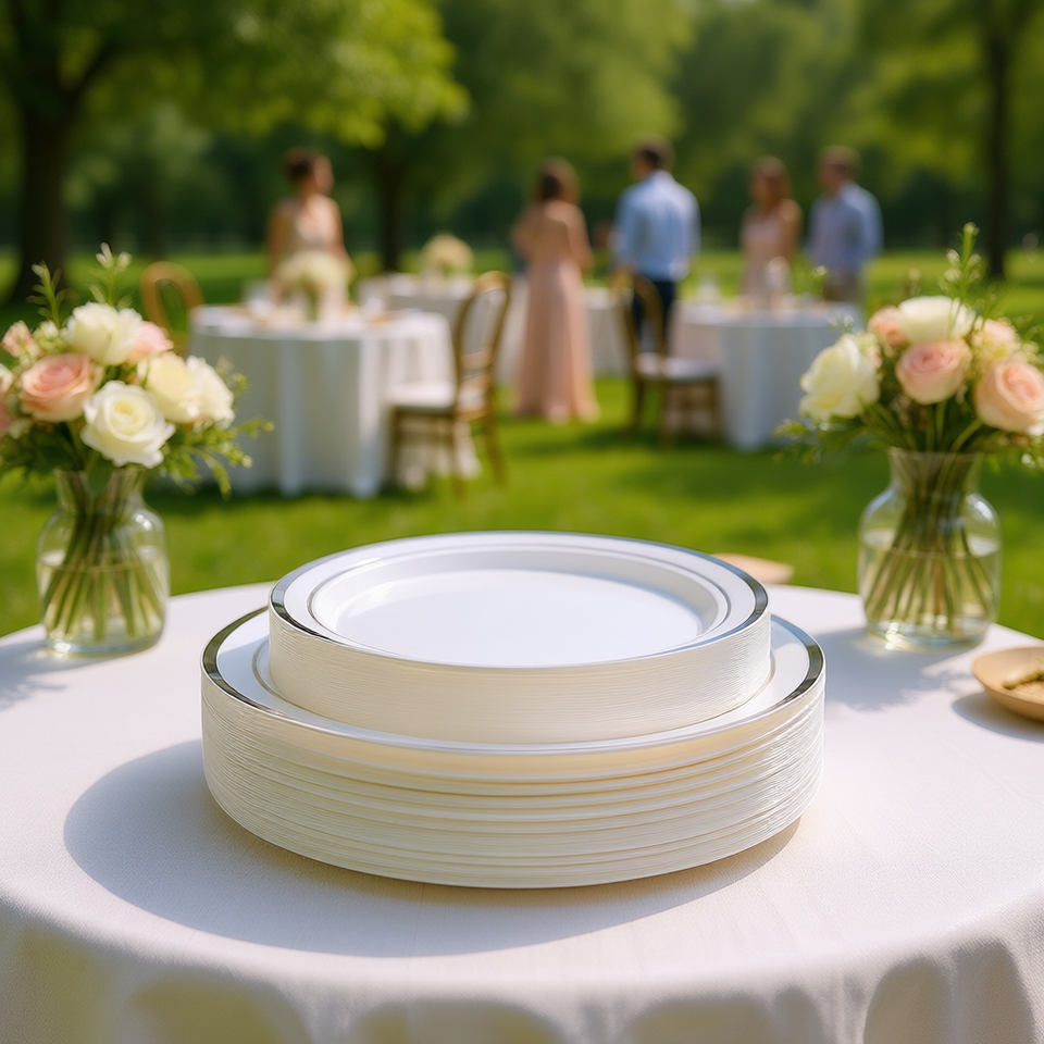 Ensemble de vaisselle jetable en plastique 350 pièces, assiettes écologiques pour fêtes, mariages, style rond décontracté