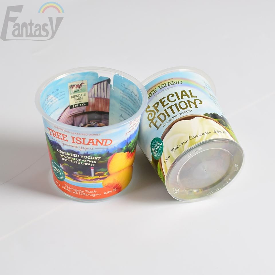 Récipient d'emballage en plastique de 350ml Pot de yaourt en PP congelé avec cuillère à couvercle
