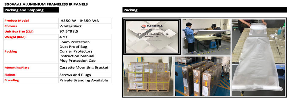 Nom du produit:Panneau de chauffage infrarouge Frameless de 350 watts