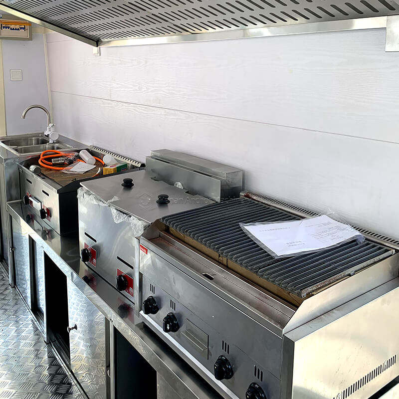 Remorque alimentaire avec cadre en aluminium 350x200cm, résistante à la rouille, avec équipement de cuisine pour bonbons et chips
