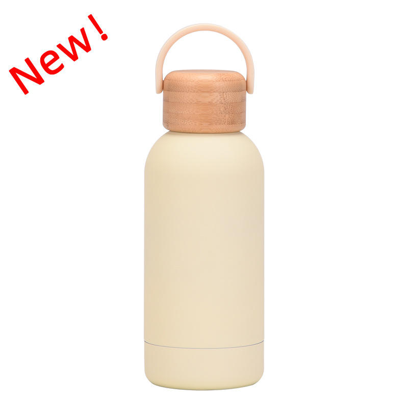 Tasse à vide à petite bouche 350ml poignée portable couverture en bois de bambou tasse à eau extérieure isolée bouteille d'eau en acier inoxydable