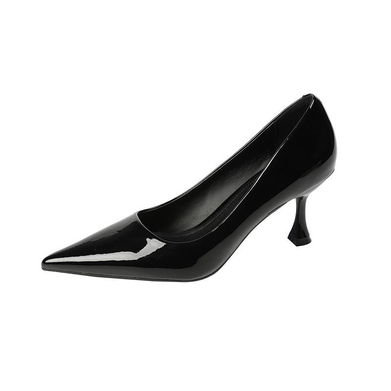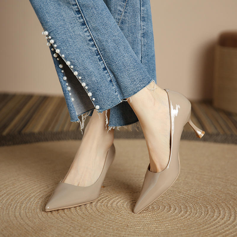 352 1-1 Chaussures à talons hauts pointus françaises pour femmes, nouvelle collection Show Tong Qin, talons aiguilles en cuir verni nude à semelle souple