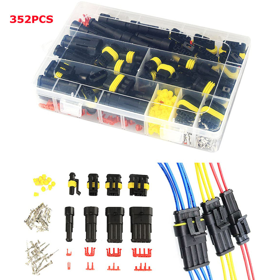 352 pièces Connecteurs étanches IP68 pour voiture PCB FPC Câble électrique Kit de connecteurs 1/2/3/4 broches Bornes Faisceau de câblage Prise