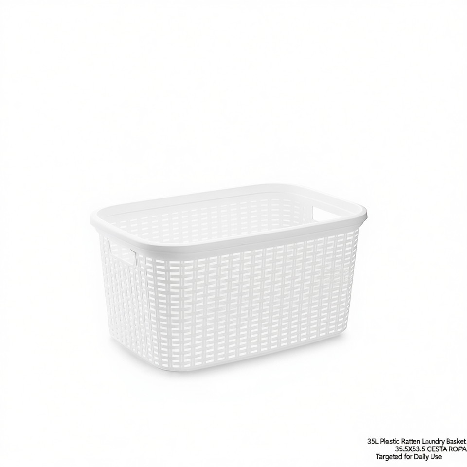 Panier à linge en rotin plastique 35L 35.5X53.5 CESTA ROPA Conçu pour un usage quotidien