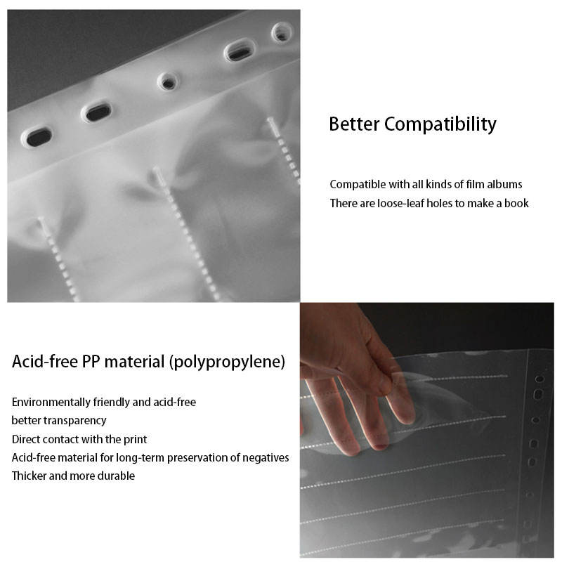 Pages de stockage pour négatifs 35MM avec trous latéraux, pochettes sans acide pour films 135MM noir et blanc et couleur