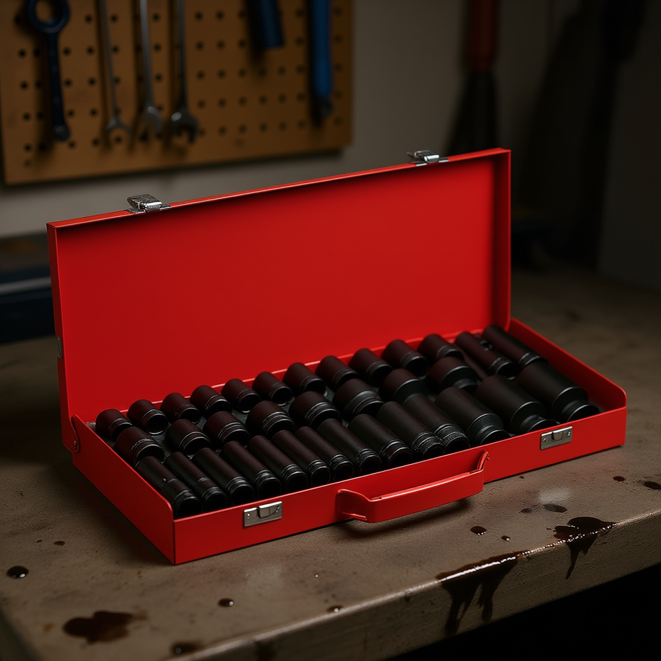 Jeu de douilles métriques à chocs profonds 35 pièces 1/2 po, 8 mm-32 mm, oxyde noir, outil de garage hexagonal de qualité industrielle