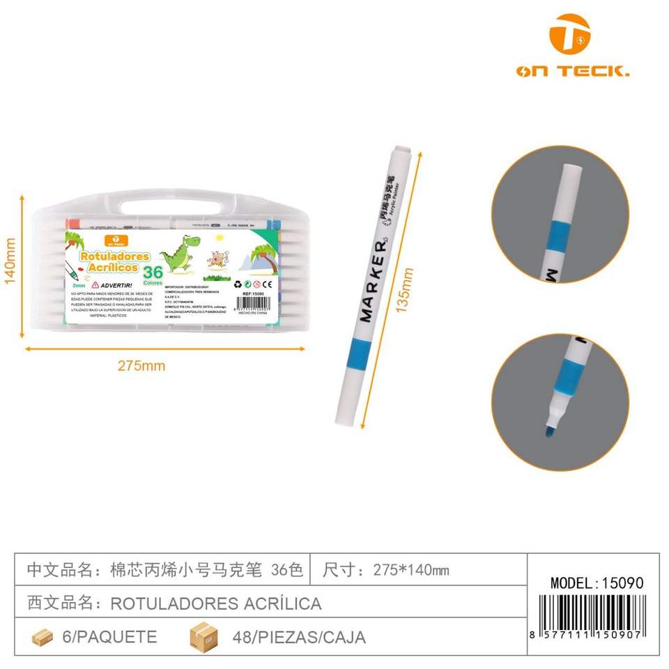 Marqueurs d'art acryliques On Teck Sa De Cv 36 couleurs, pointe en coton, fournitures d'artisanat pour artistes, toile, bricolage 15090