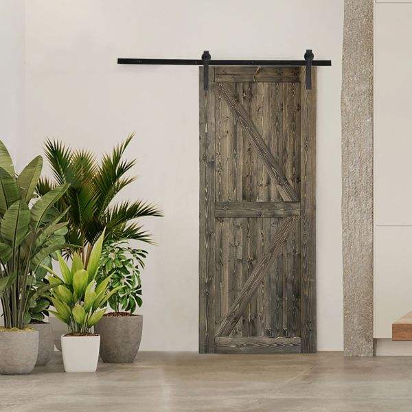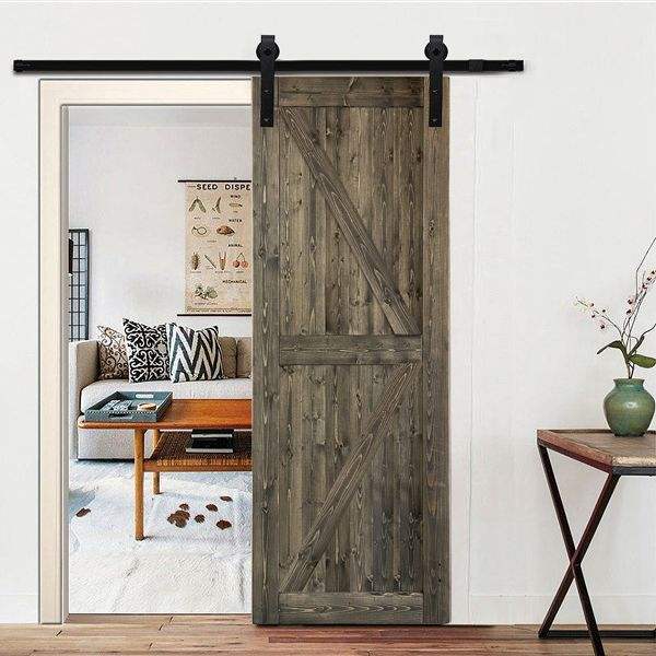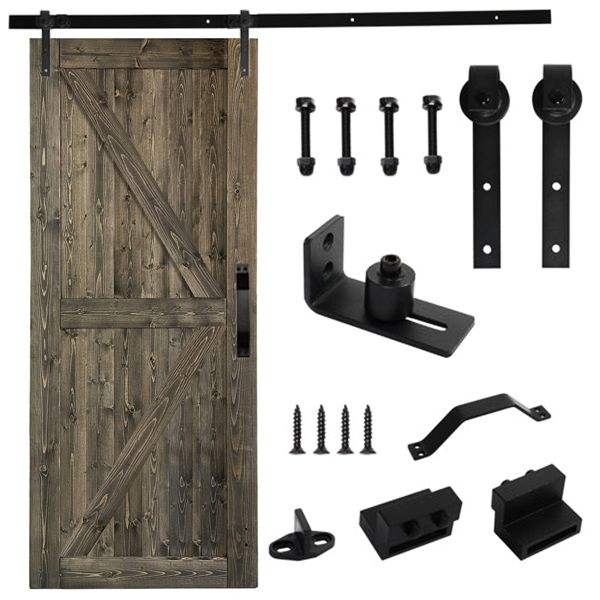 36 In. X 84 In. Solid Spruce Wood Sliding Barn Door Hardware Kit 6.6FT Gray Spray Paint with Handle K Frame 84 In. X 36 In.