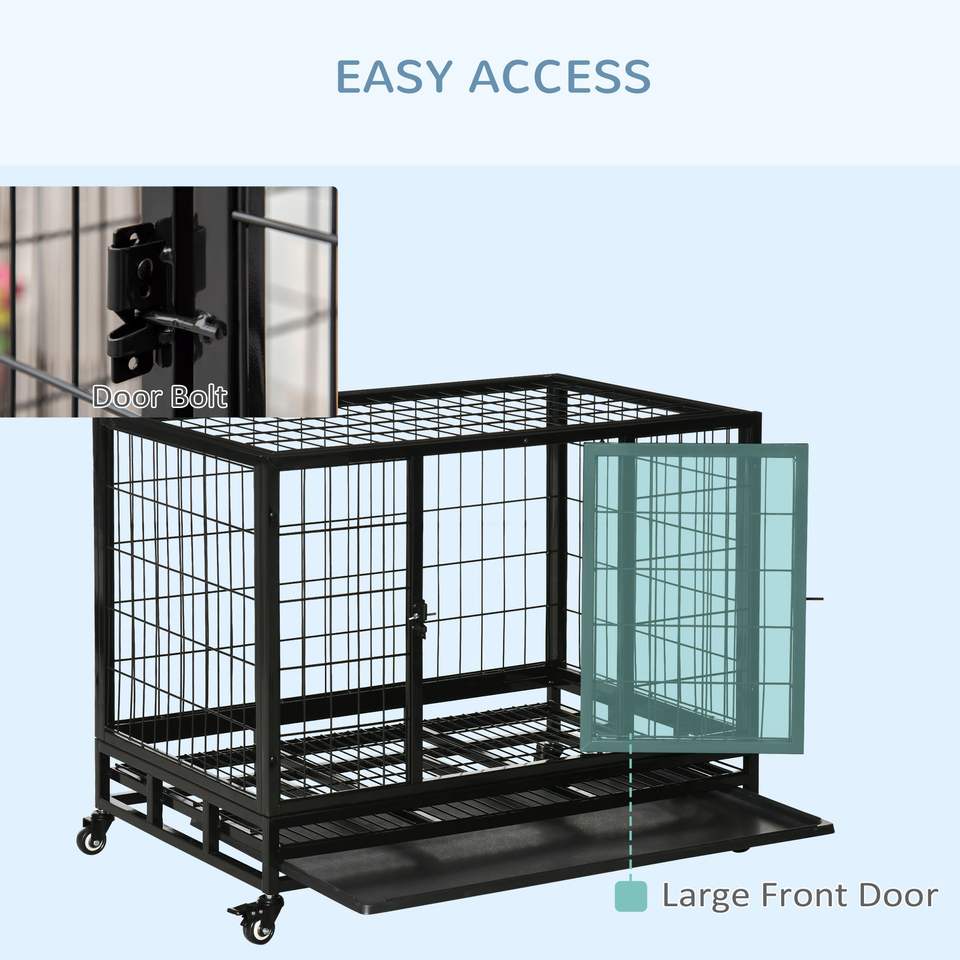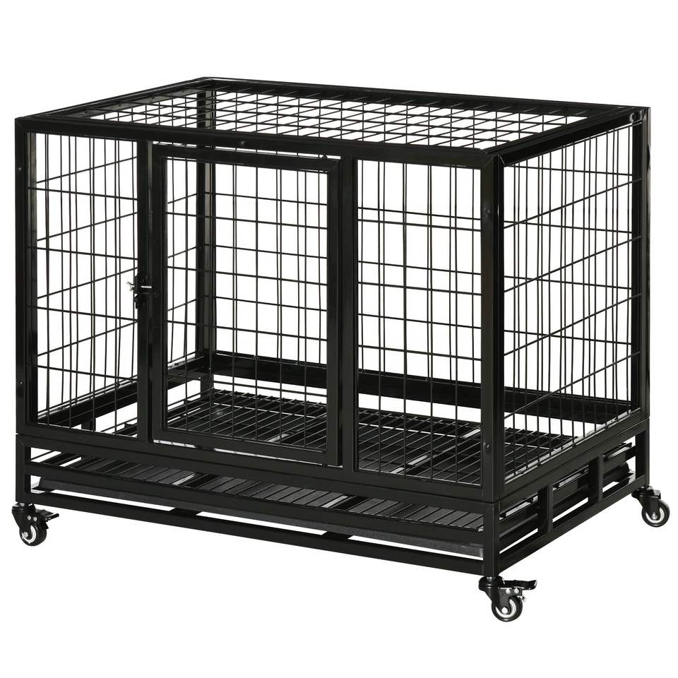 Cage pour chien robuste à double porte de 36 pouces avec roues verrouillables et plateau amovible pour chiens de taille moyenne et grande, noire