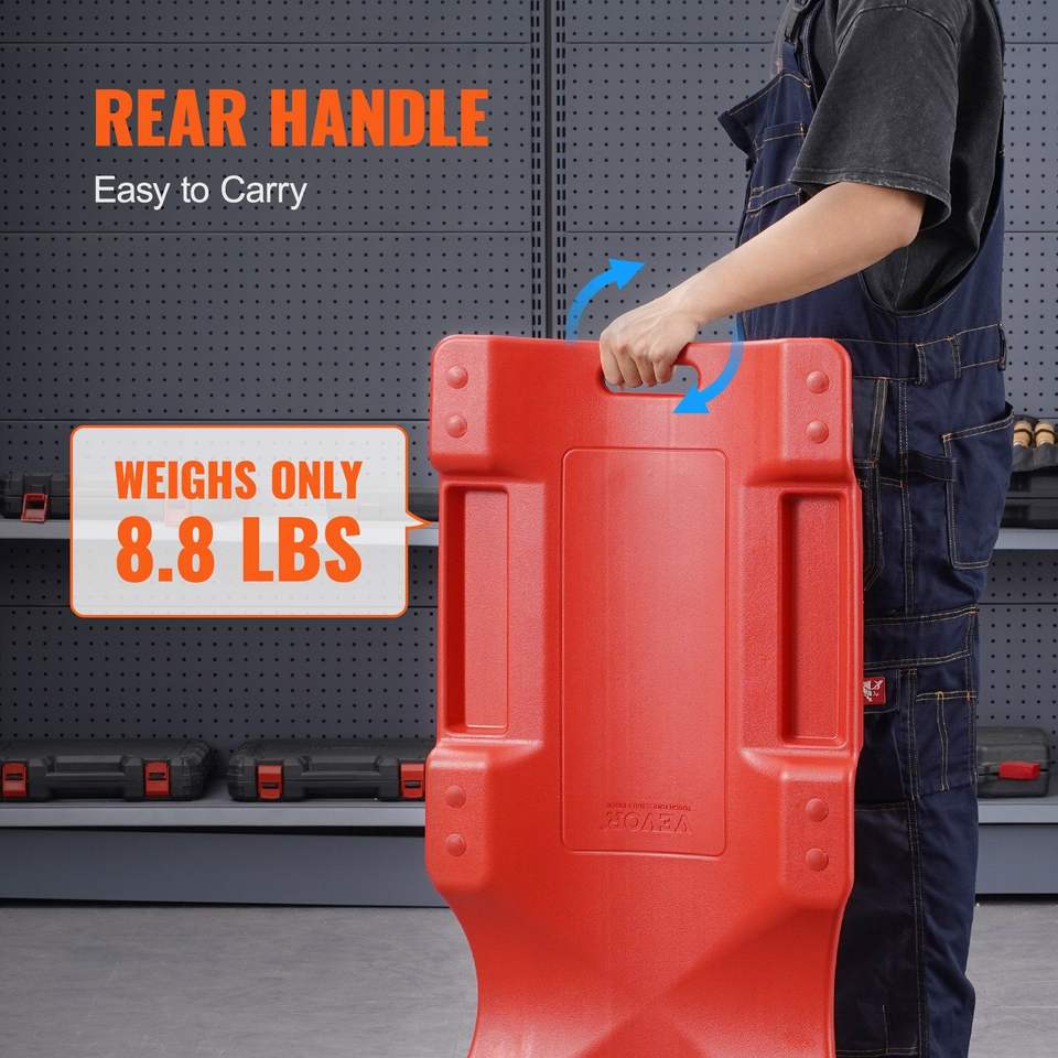 Chariot d'atelier ergonomique en plastique de 36 pouces avec capacité de 350 lb, pour garage automobile, en HDPE rembourré