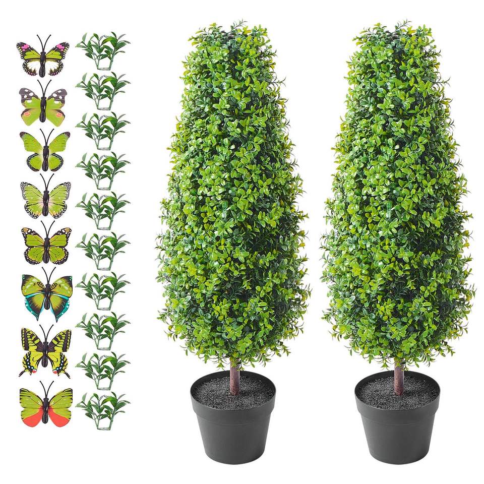 Arbre artificiel en buis de 36 pouces de haut, plante verte artificielle avec feuilles supplémentaires dans un petit pot, ensemble de 2 pièces