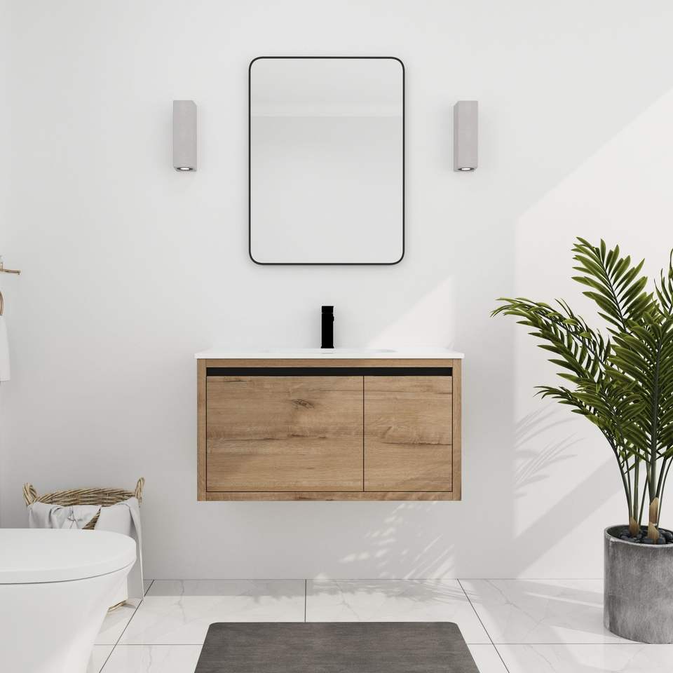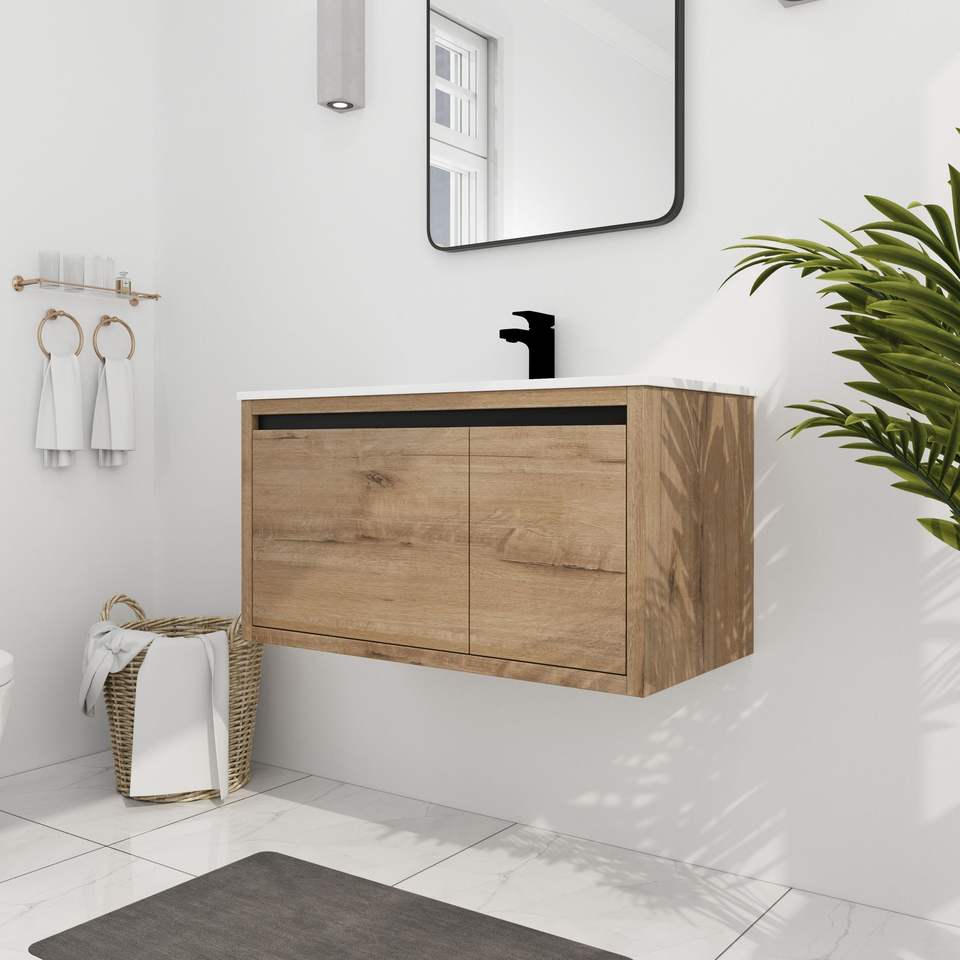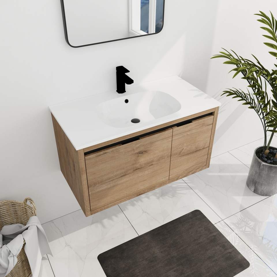 Meuble-lavabo mural de salle de bain de 36 pouces avec lavabo en gel intégré et miroirs élégants