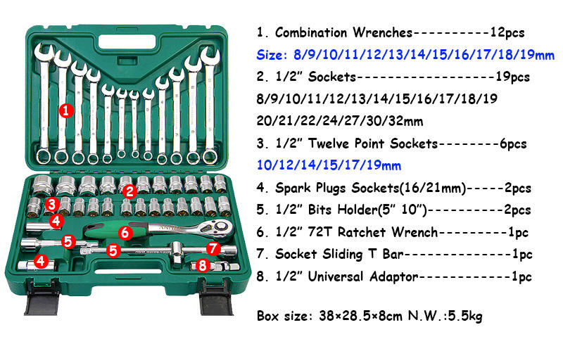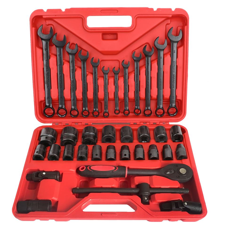 Douilles pneumatiques à double usage, clé à cliquet à extrémité ouverte de haute qualité Crv ensemble d'outils pneumatiques réglables de taille multiple 36 pièces