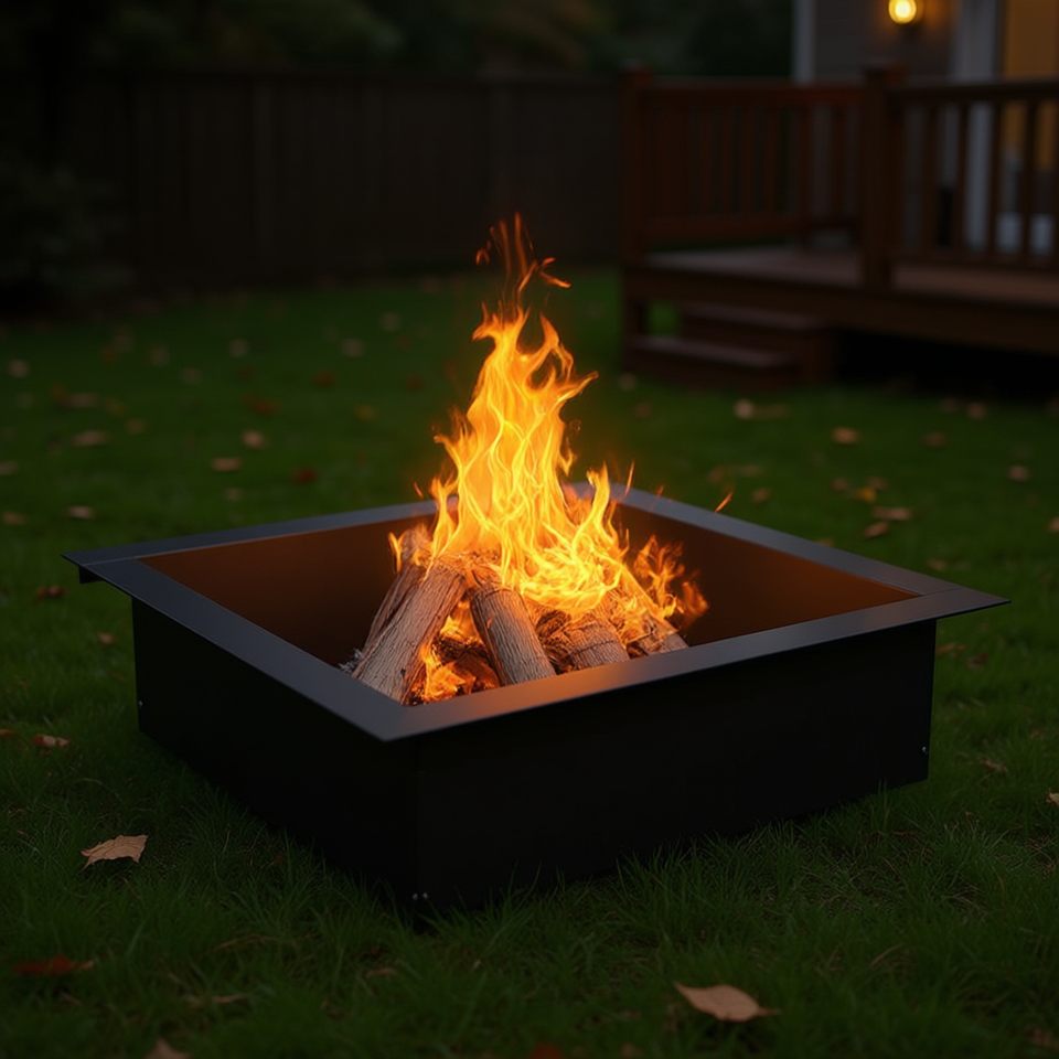 Brasero carré autoportant 36 x 36 en acier thermolaqué pour chauffage extérieur au bois