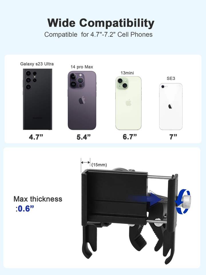 Support de téléphone réglable à 360 ° pour voiturette de golf pouvant contenir des appareils de 4.7 à 7.1 pouces, compatible avec voiturette de golf, vélo, moto et poussette
