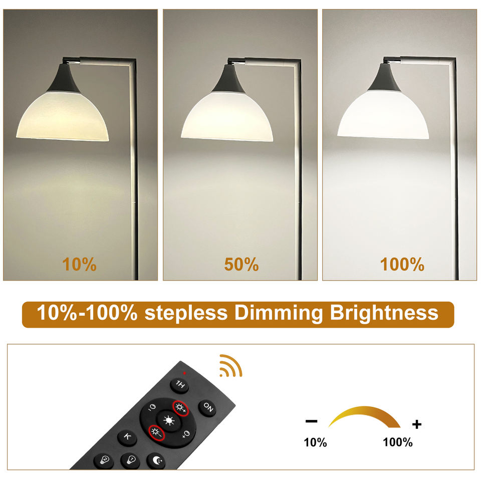 Lampe de sol LED réglable à 360° avec télécommande tactile, ampoule remplaçable, CRI 90 élevé, design moderne, base en métal robuste, bureau, intensité variable