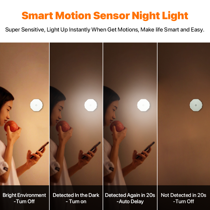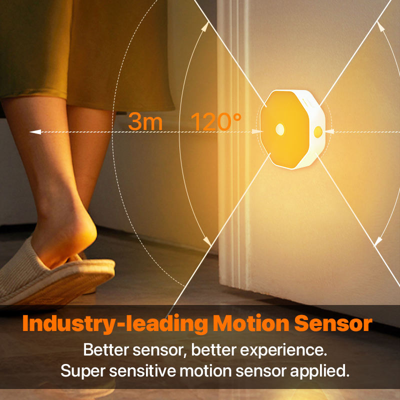 360 ° Lampe à détecteur de mouvement automatique, lumière LED à intensité variable, rechargeable, magnétique, pour la nuit, murale, pour armoire de cuisine