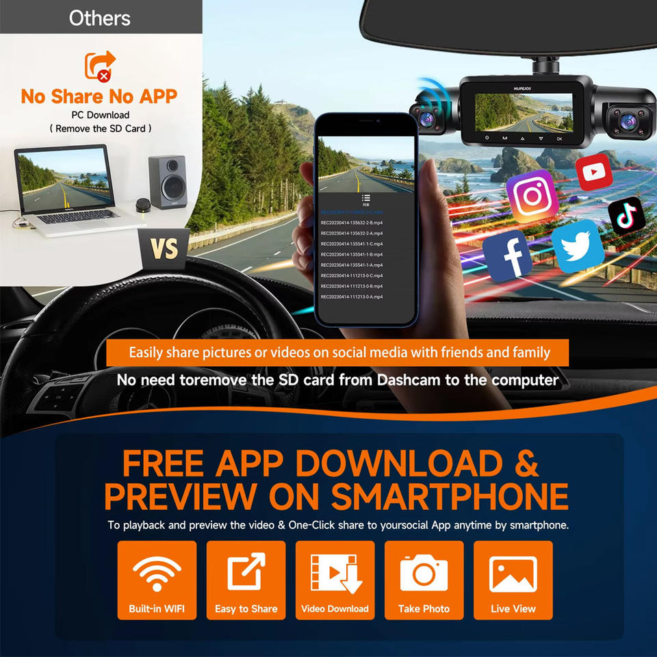 Vision nocturne, WDR, G-sensor, Enregistrement en boucle, Intégré WiFi, Détection de mouvement, D'urgence Accident Serrure, MODE park, External GPS logger