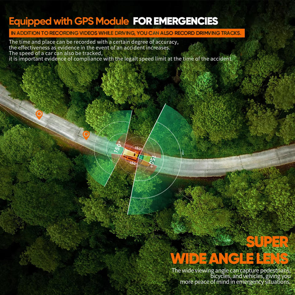 Vision nocturne, WDR, G-sensor, Enregistrement en boucle, Intégré WiFi, Détection de mouvement, D'urgence Accident Serrure, MODE park, External GPS loggerFonction