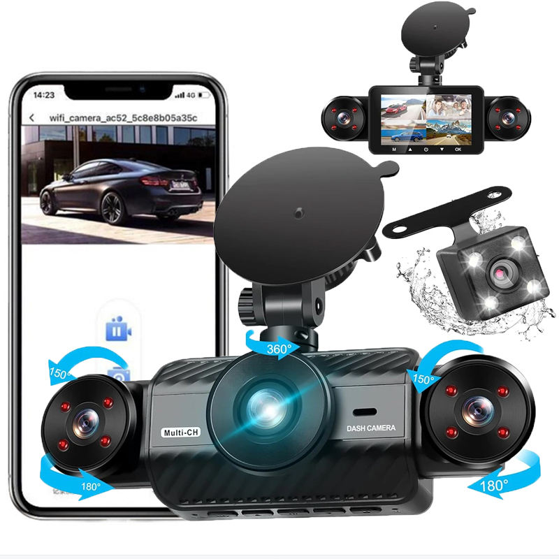 Caméra embarquée 360° pour voiture, écran 3 pouces, 4 canaux HDR, dashcam 1080P, boîte noire pour voiture, vision nocturne, WiFi, capteur G, 4 caméras avant et arrière