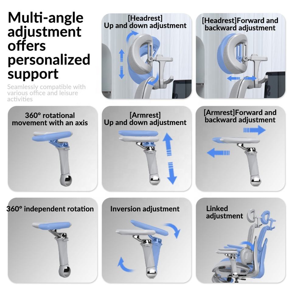 Function:adjustable armrest,back,headrest,and waist massage support
