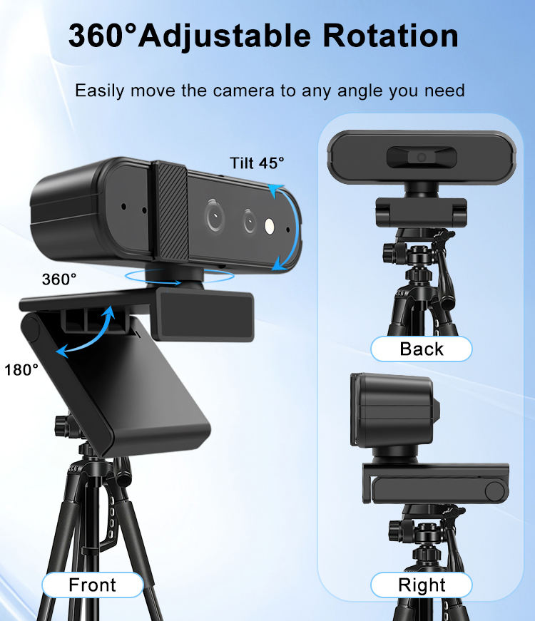 Caméra Web Full HD 1080P à 360 degrés avec microphone ENC, webcam professionnelle avec Windows Hello pour PC/ordinateur portable/ordinateur de bureau