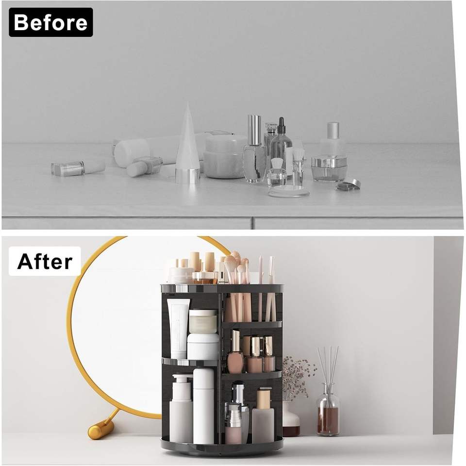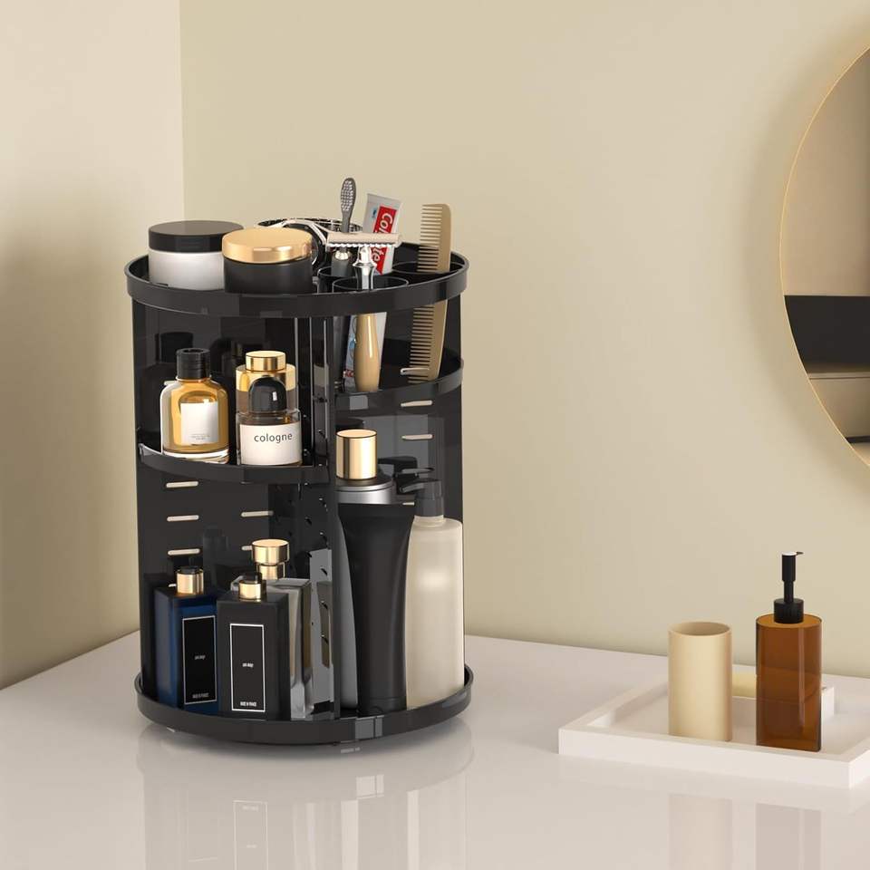 Organisateur de maquillage rotatif à 360 degrés avec plateaux ajustables, carrousel de rangement pour produits de soin et de beauté