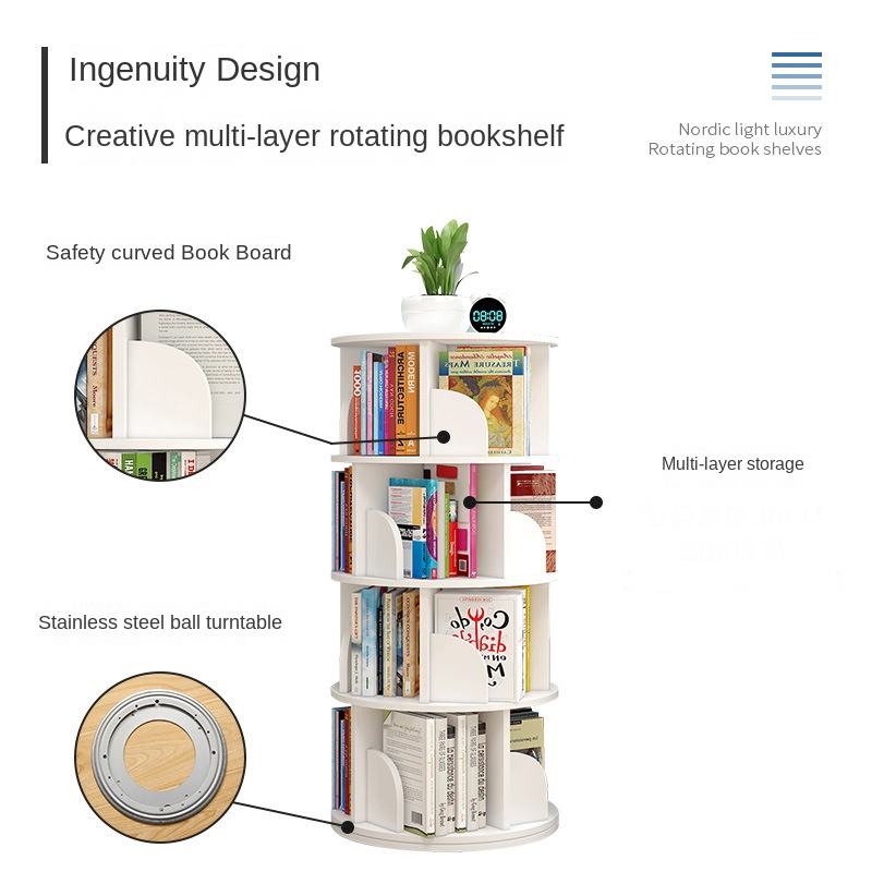Étagère de rangement pour salon, design moderne, 3 niveaux, en bois, rotative à 360 degrés, sur pied, écologique, pour enfants et adultes