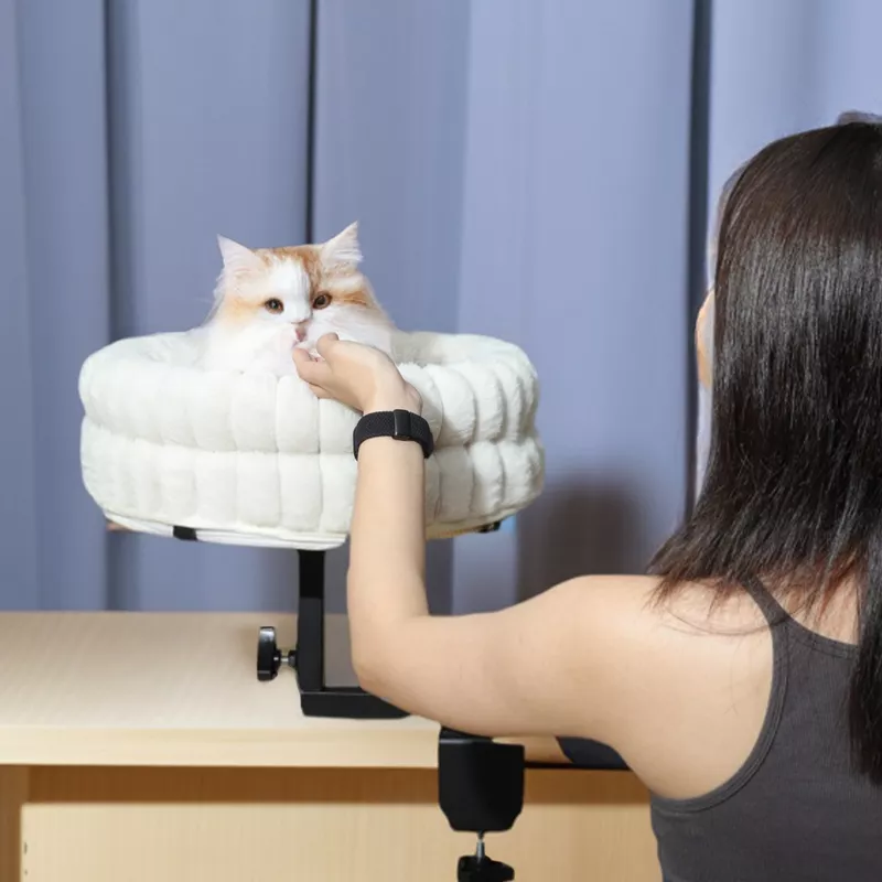 Lit de bureau pour chat à rotation de 360 degrés Mobilier de nid de chat d'intérieur moderne pour bureaux et tables de jeux Table d'île Lit de bureau réglable pour chat