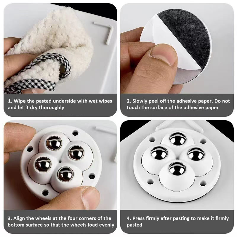 Roulettes universelles à rotation à 360 degrés, sans perçage, adhésives, en acier/bille en caoutchouc, série Truckle