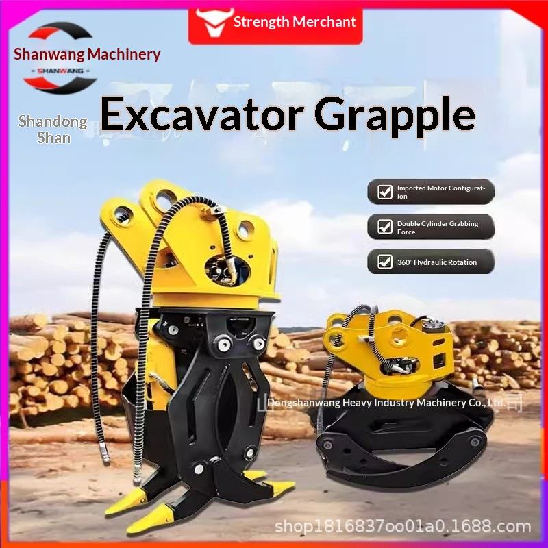 Pince à bois hydraulique multifonctionnelle à cylindre simple et double pour excavatrice, rotation à 360 degrés, pour travaux de construction