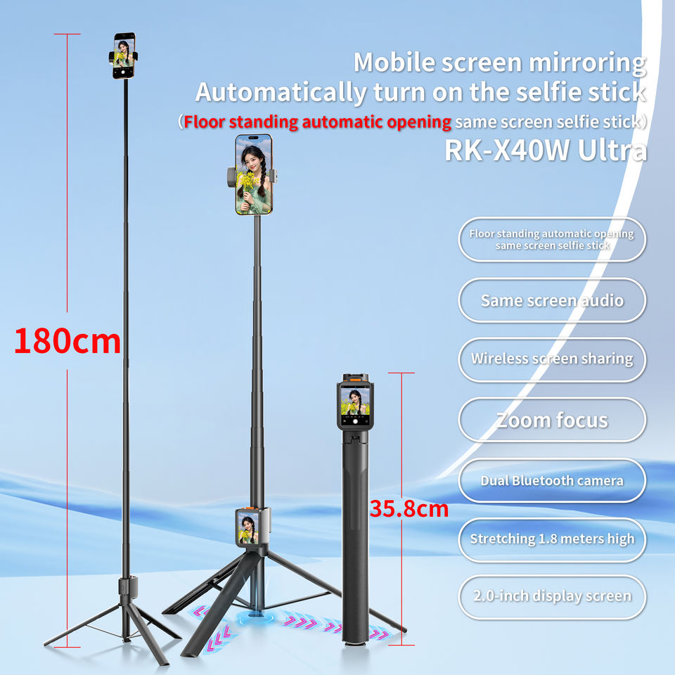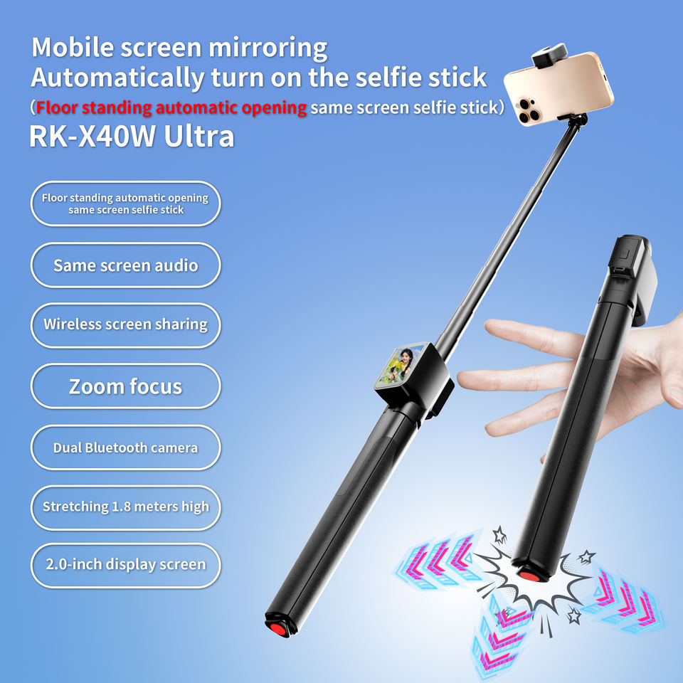 Trépied pliable Selfie Stick, Avec écran de moniteur selfie