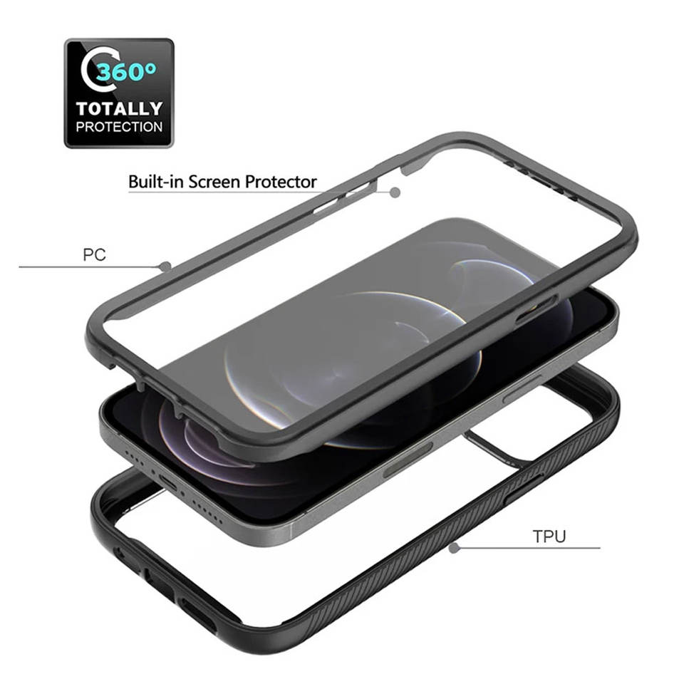 360 Full Body Belt Shockproof Phone Case with Screen Protector for iPhone 16, 15, 14, 13, 12, 11 Pro Max, X, XS Max, XS, XR, SE