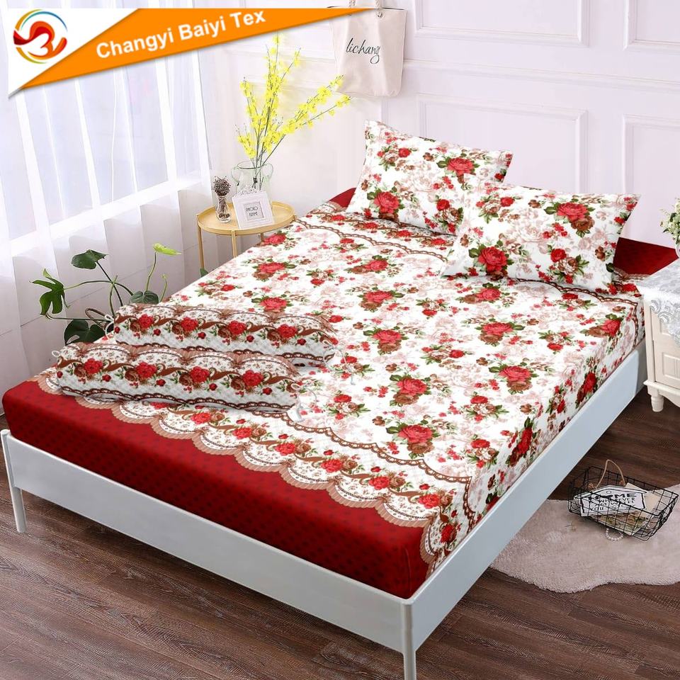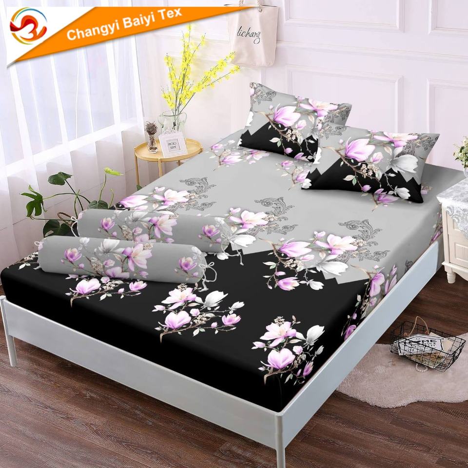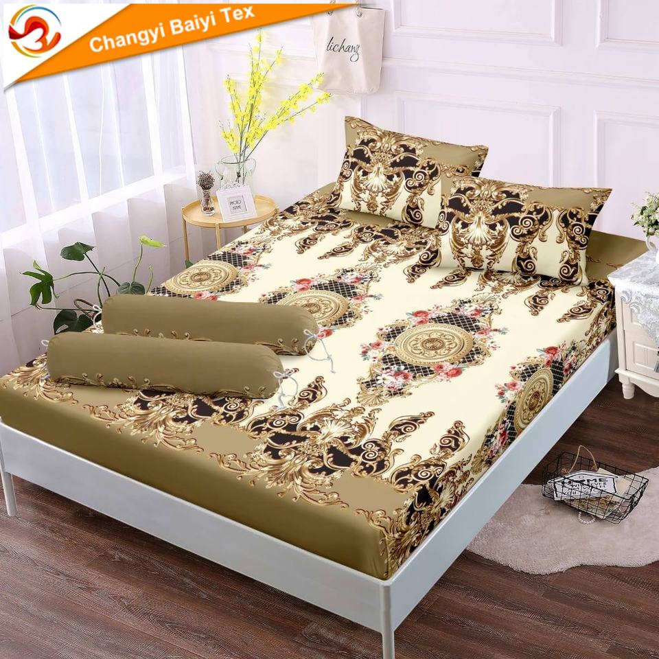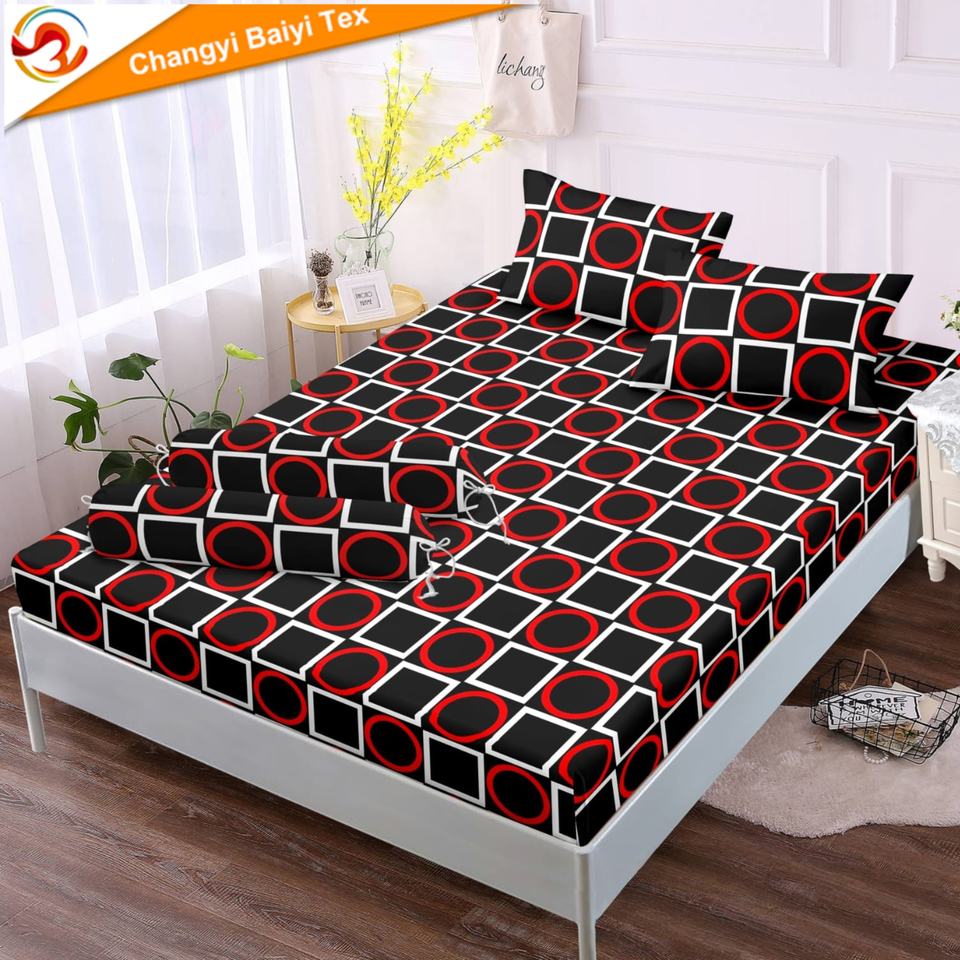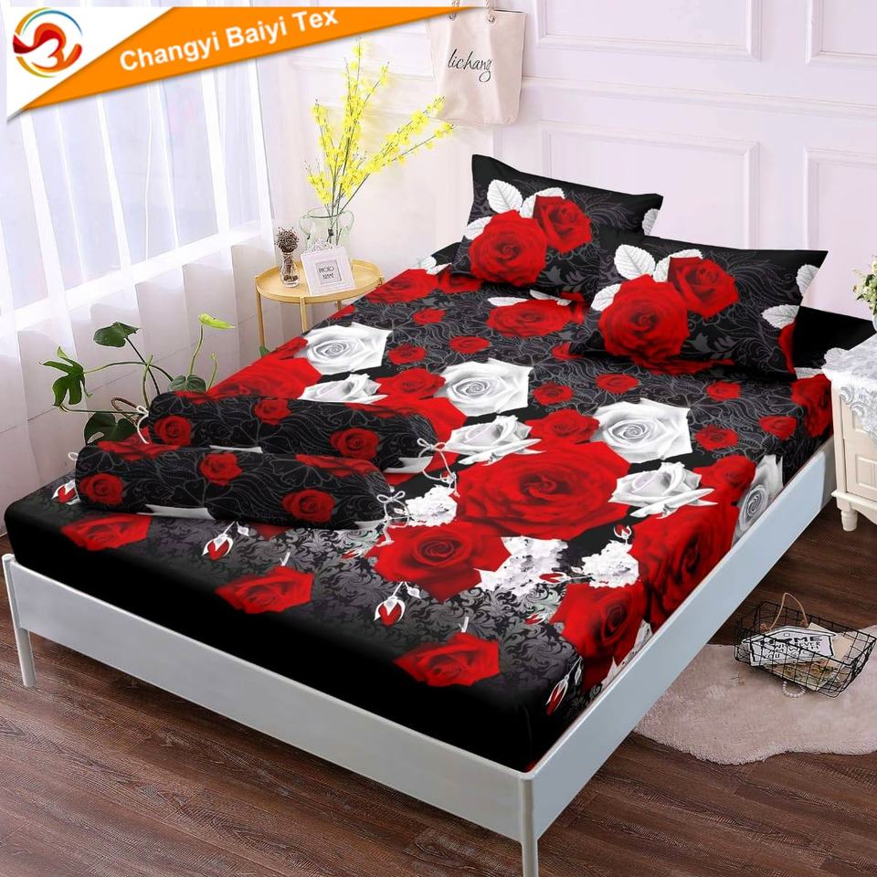 360 ° Parure de lit King Size de luxe à motif imprimé, drap-housse intégral avec traversin, housse de couette en microfibre colorée