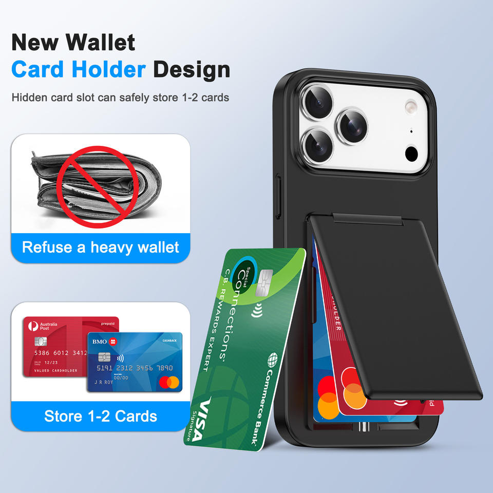360 ° Coques de téléphone antichoc intégrales pour iPhone 17 Air 16 15 14 13 12 Pro Max Plus avec porte-cartes intégré et protection arrière