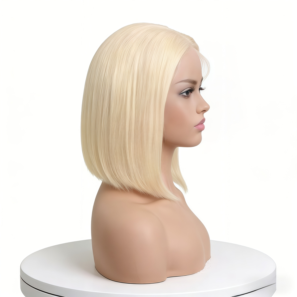Perruque Lace Front 360 Cheveux Humains Raides Densité 150% HD Sans Colle avec Baby Hair Vente en Gros Perruque Bob Cheveux Humains Remy Blond