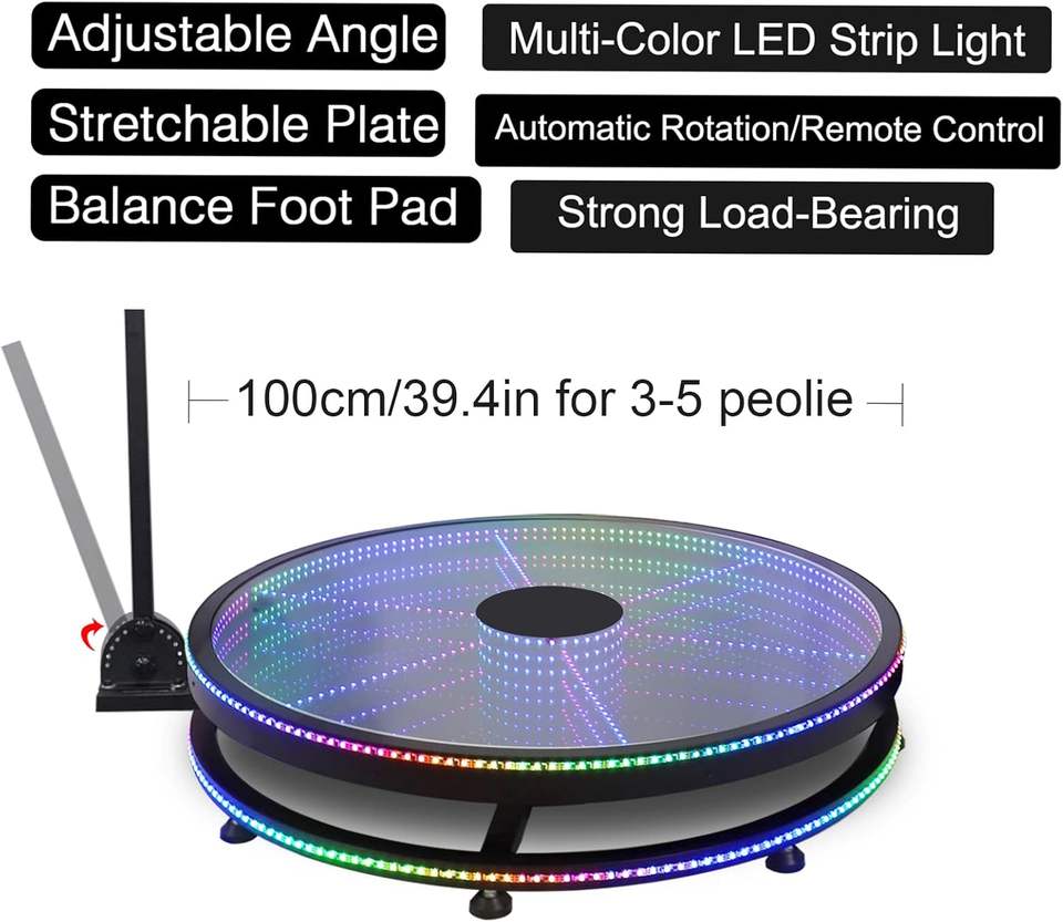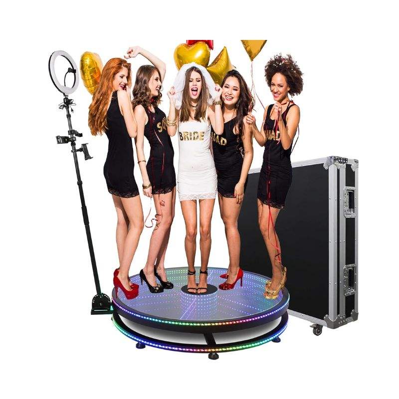 Machine de photomaton 360° avec batteries supplémentaires + éclairage photographique, télécommande, caméra rotative automatique 360° (verre de 40 pouces)