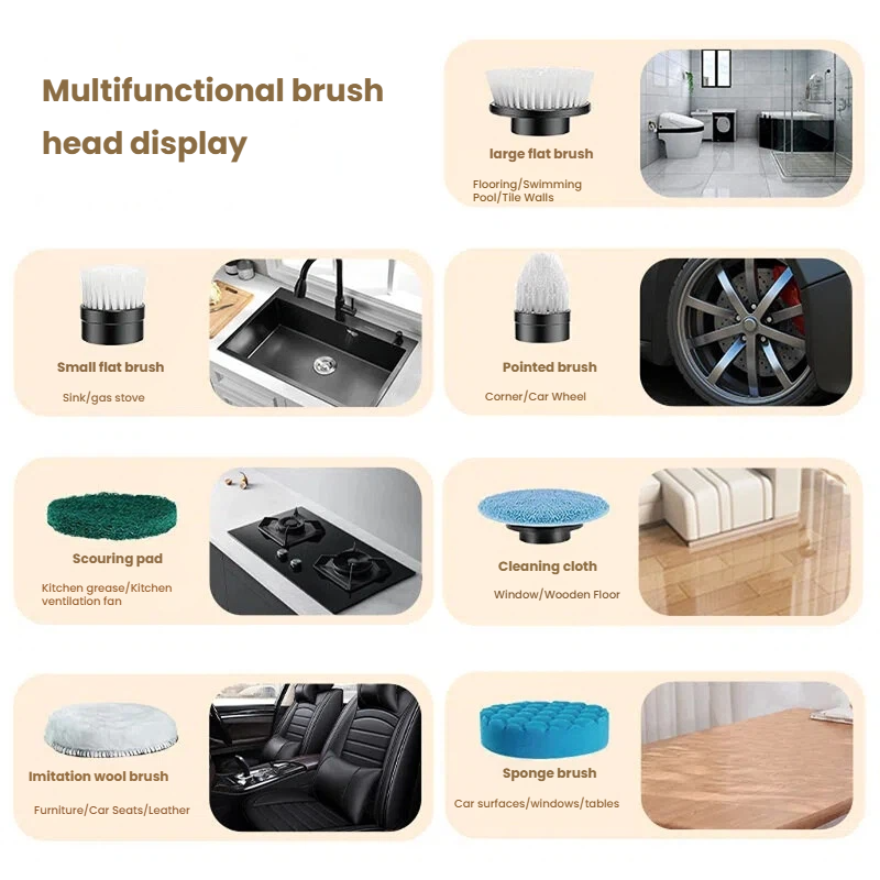 360 ° Brosse de nettoyage électrique rotative 7 en 1 en plastique ABS 25W avec contrôle de vitesse à 3 niveaux 316 / 340 / 400 tr/min pour le nettoyage ménager
