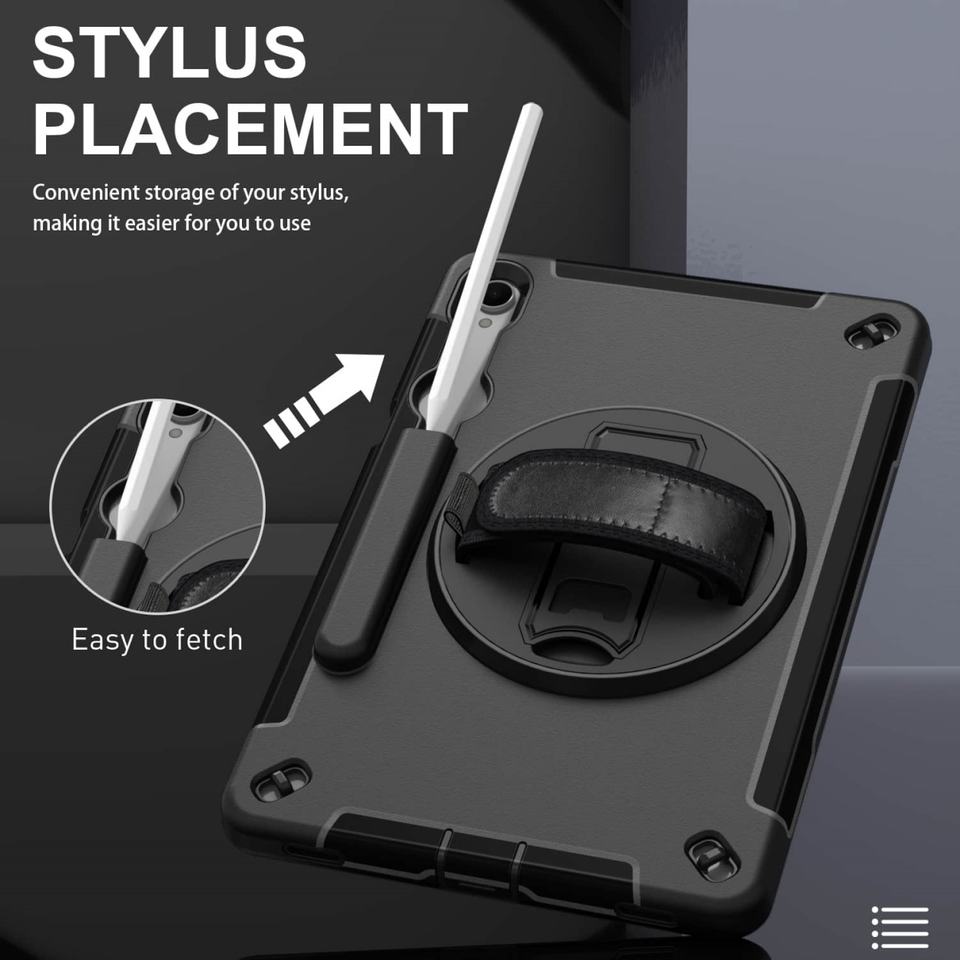 Étui de protection pour tablette Samsung Galaxy Tab S11 11 pouces avec support rotatif à 360°, sangle de maintien, emplacement pour stylet, en TPU et PC