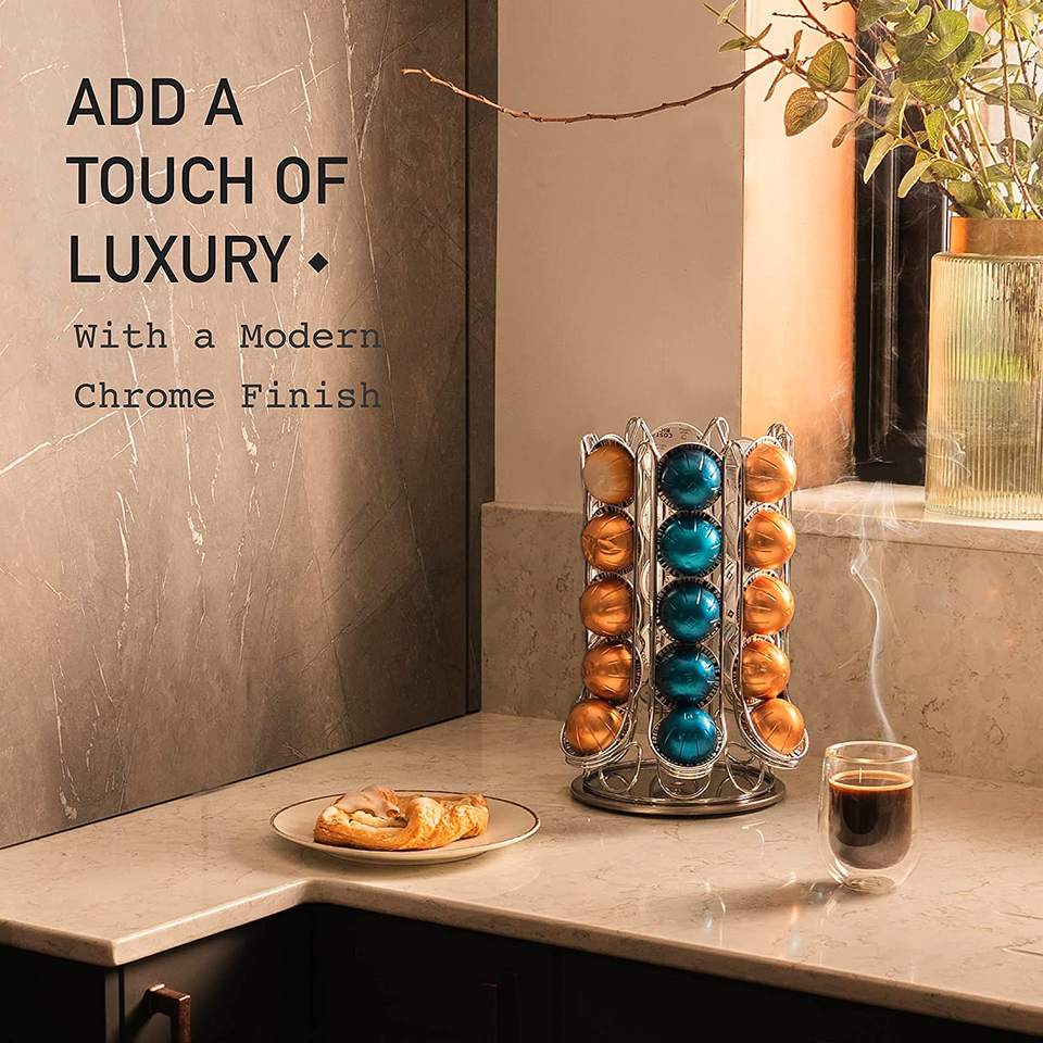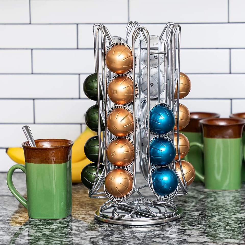 360 rangement rotatif disponible à l'intérieur du support de dosettes de café de carrousel pour 30 dosettes de Nespresso Vertuo Vertuoline