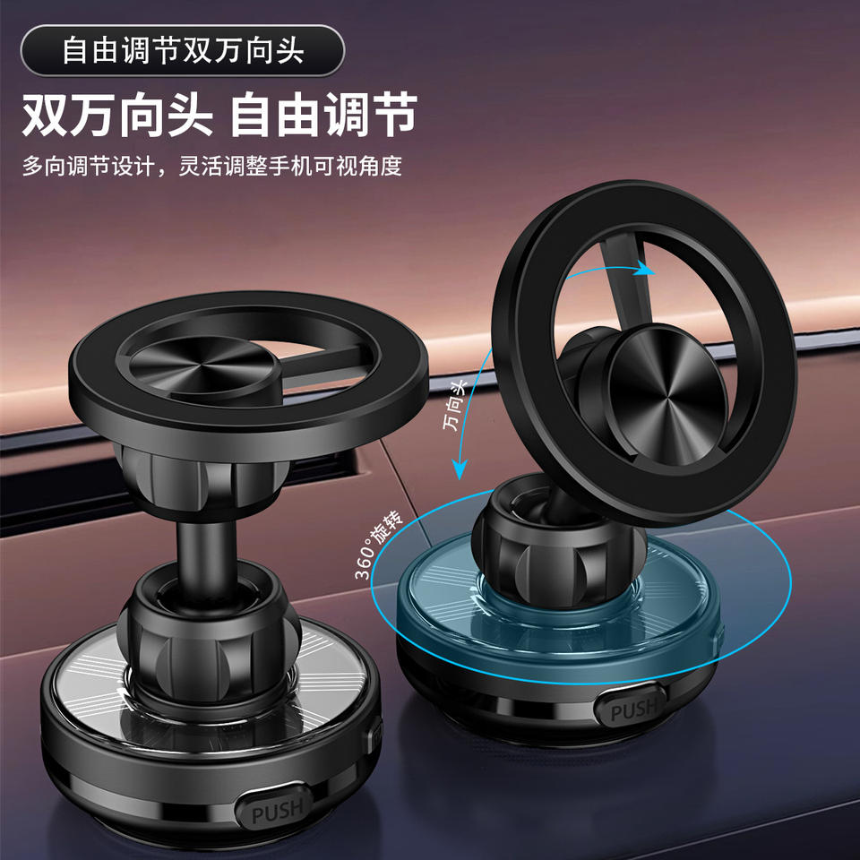 Support de téléphone de voiture à aspiration magnétique rechargeable à charge sans fil rotative à 360 ° avec panneau solaire