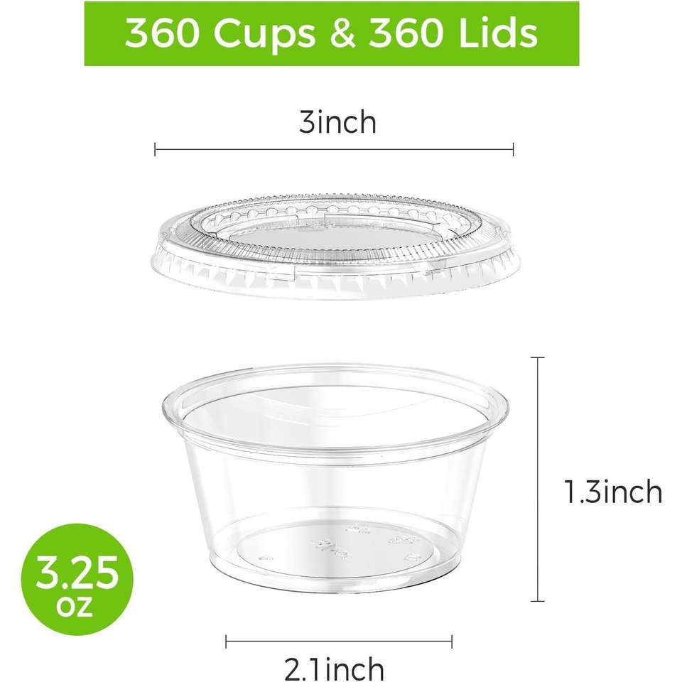 Lot de 360 gobelets jetables de 4 oz pour Jello Shots avec couvercles, récipients en plastique robustes et de qualité alimentaire pour condiments et sauces.