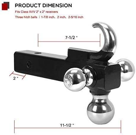 360 ° Attelage pivotant pour remorque, support à trois boules avec crochet robuste et verrou antivol